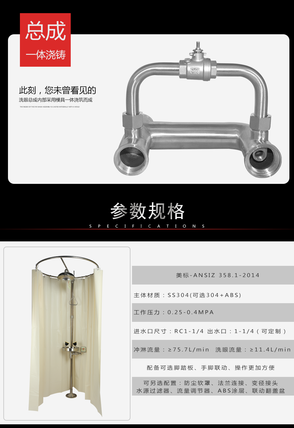产品名称:YK1001Y浴帘式洗眼器