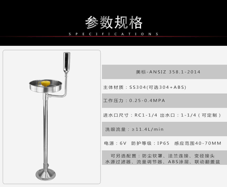 执行标准:美标ANSIZ 358.01-2014 &国标GBT 38144.1-2019
